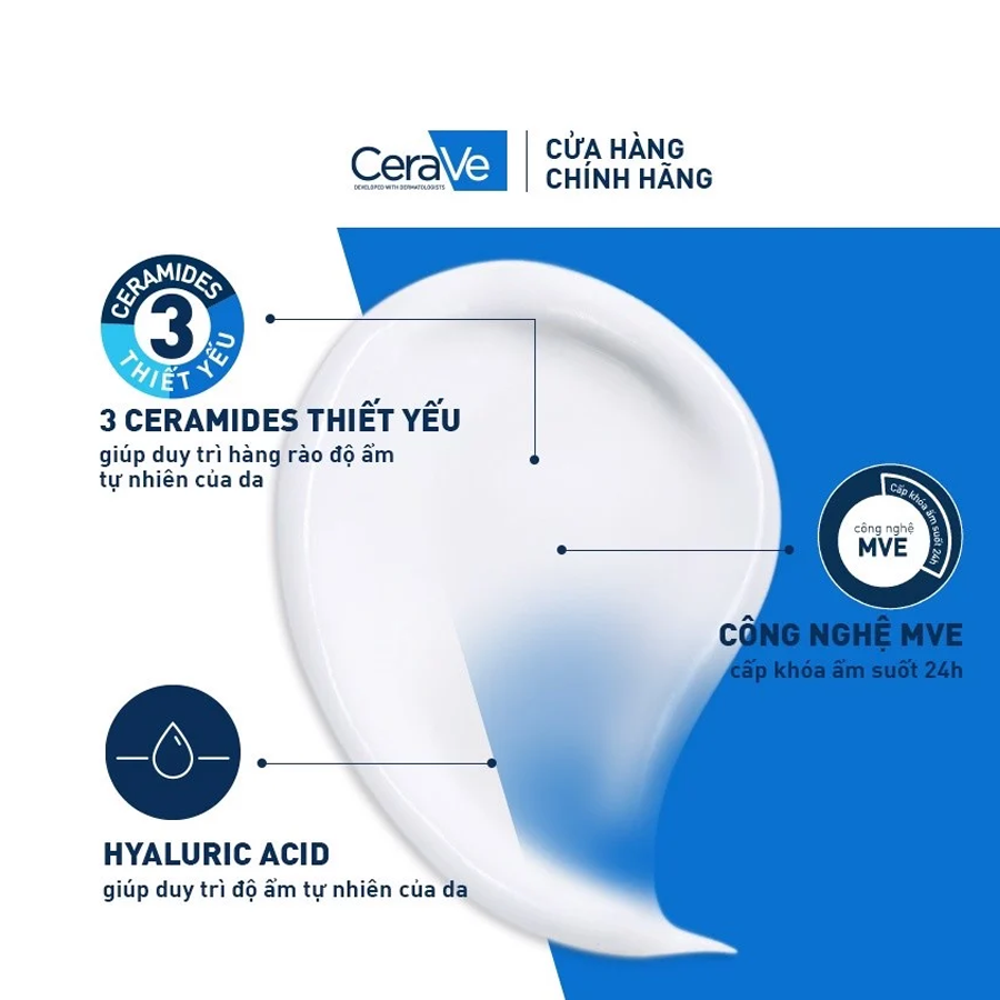 Sữa dưỡng giúp dưỡng ẩm dành cho da khô và rất khô CeraVe Moisturising Lotion sở hữu công thức dịu nhẹ kết hợp cùng Công nghệ MVE độc quyền, sản phẩm có khả năng cấp nước và khoá ẩm cực kỳ hiệu quả, giúp duy trì lượng nước ổn định trên da, ngăn ngừa tình trạng thoát ẩm gây khô da, đem lại làn da mềm mại mịn màng tự nhiên. Bên cạnh đó, với việc bổ sung 3 loại Ceramides (1, 3, 6-II), lotion nhà Cerave còn giúp tăng cường chức năng của hàng rào bảo vệ da, giúp da tránh khỏi kích ứng, hỗ trợ dưỡng sáng da hiệu quả từ sâu bên trong. Sản phẩm có nguồn gốc thiên nhiên lành tính, không mùi, không nhờn dính, không chứa các thành phần hóa học độc hại, chất bảo quản, hương liệu tổng hợp hay các chất tạo mùi nên hoàn toàn an toàn với làn da, kể cả làn da nhạy cảm nhất.